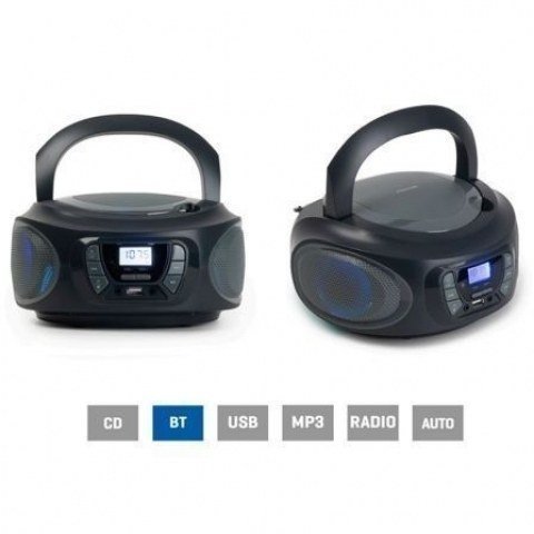Radio CD USB FM con entrada auxiliar. Excelente sonido con potente respuesta en graves. Todas las fuentes de sonido integradas en un solo equipo.