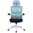 Silla de escritorio ergonómica con altura ajustable, soporte cervical adaptable y reposabrazos abatibles.